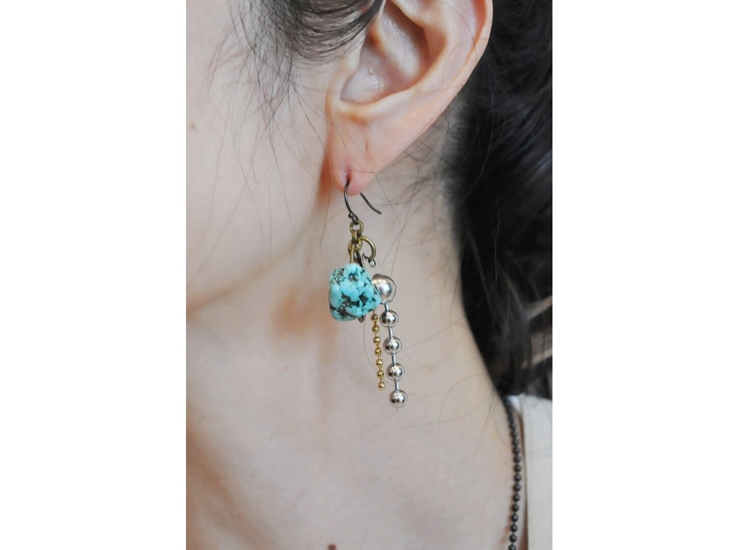 ターコイズやメタルパーツ等とanchor ballを使いデザインされた1点物。