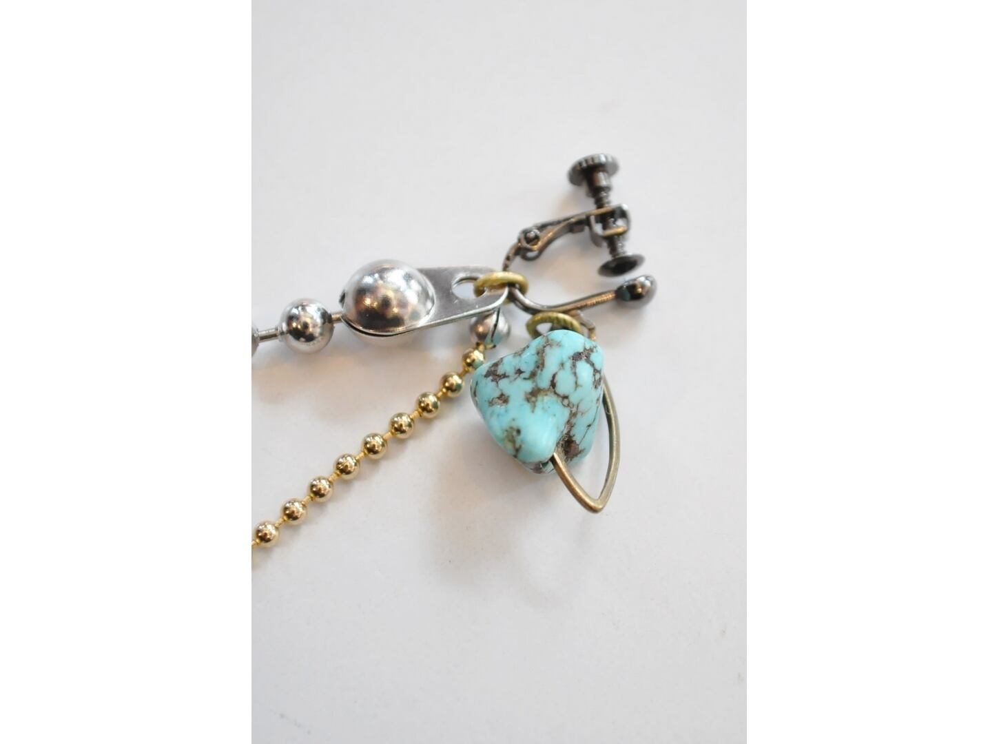 ターコイズやメタルパーツ等とanchor ballを使いデザインされた1点物。