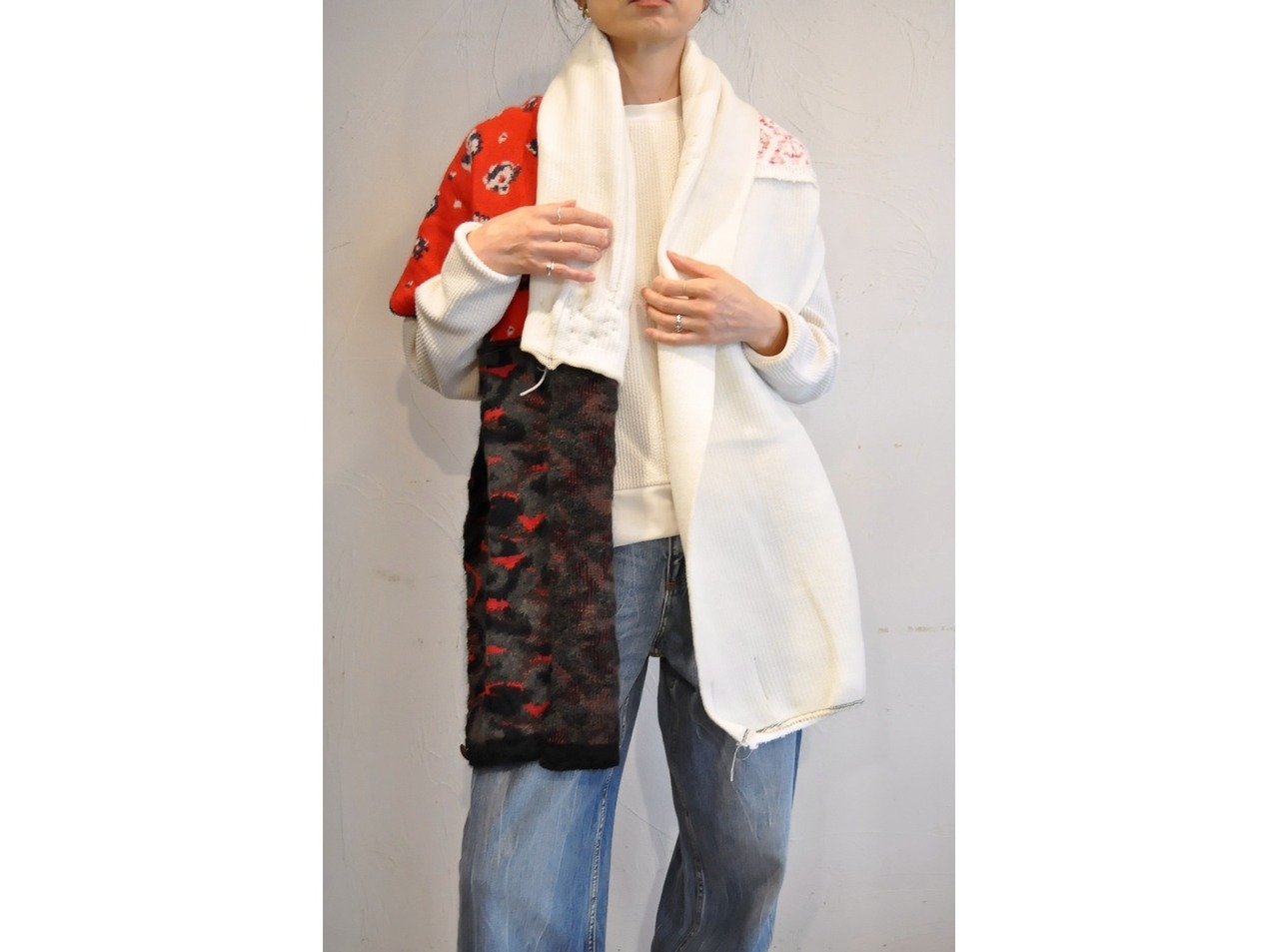 デザイナーが集めていたテキスタイルで編み上げた、巻きやすい様にカスタムした特別なアイテムです。