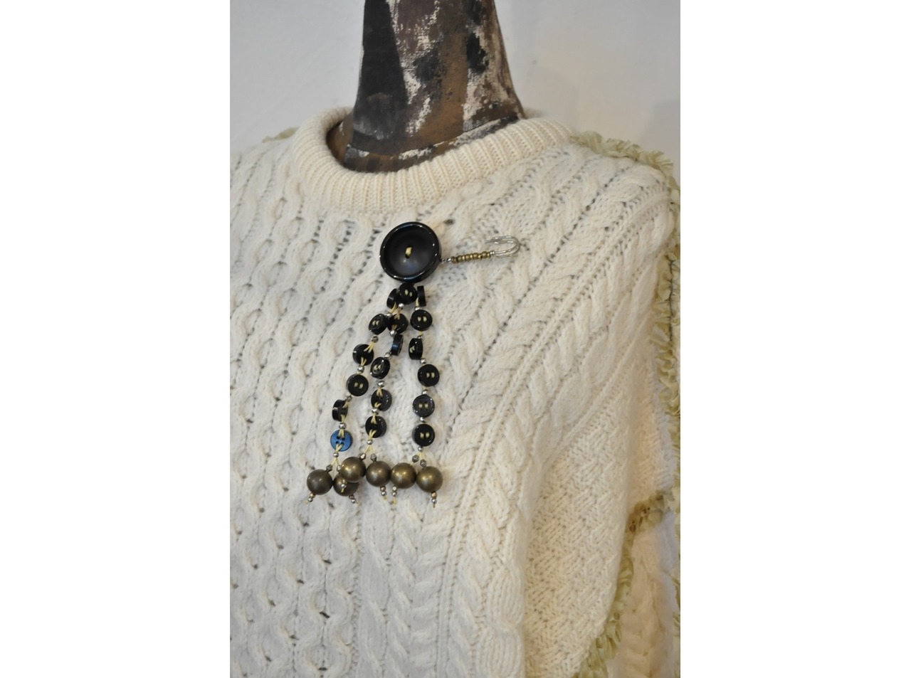 ヴィンテージパーツやビーズ、メタルパーツを使用したインパクトのある一点物のショールピン。