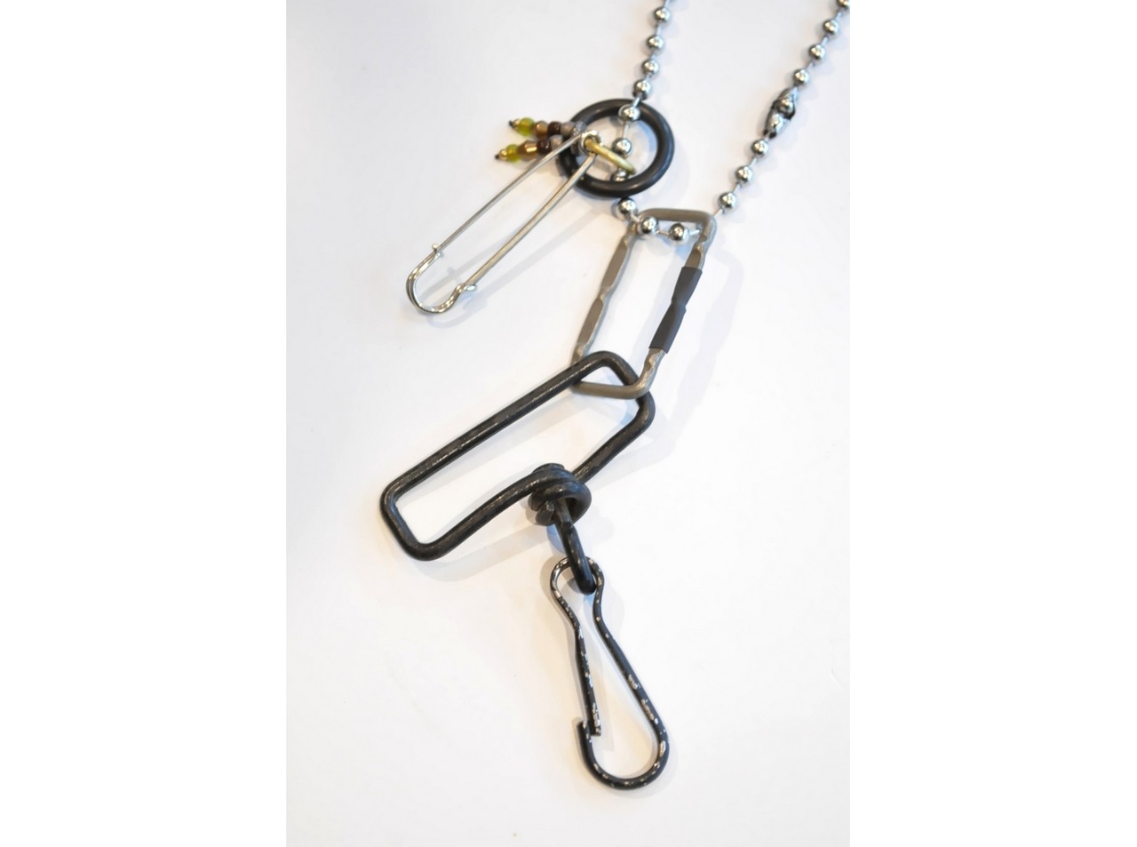太めのボールチェーンとヴィンテージパーツやメタルパーツを使用したインパクトのあるアクセサリー。