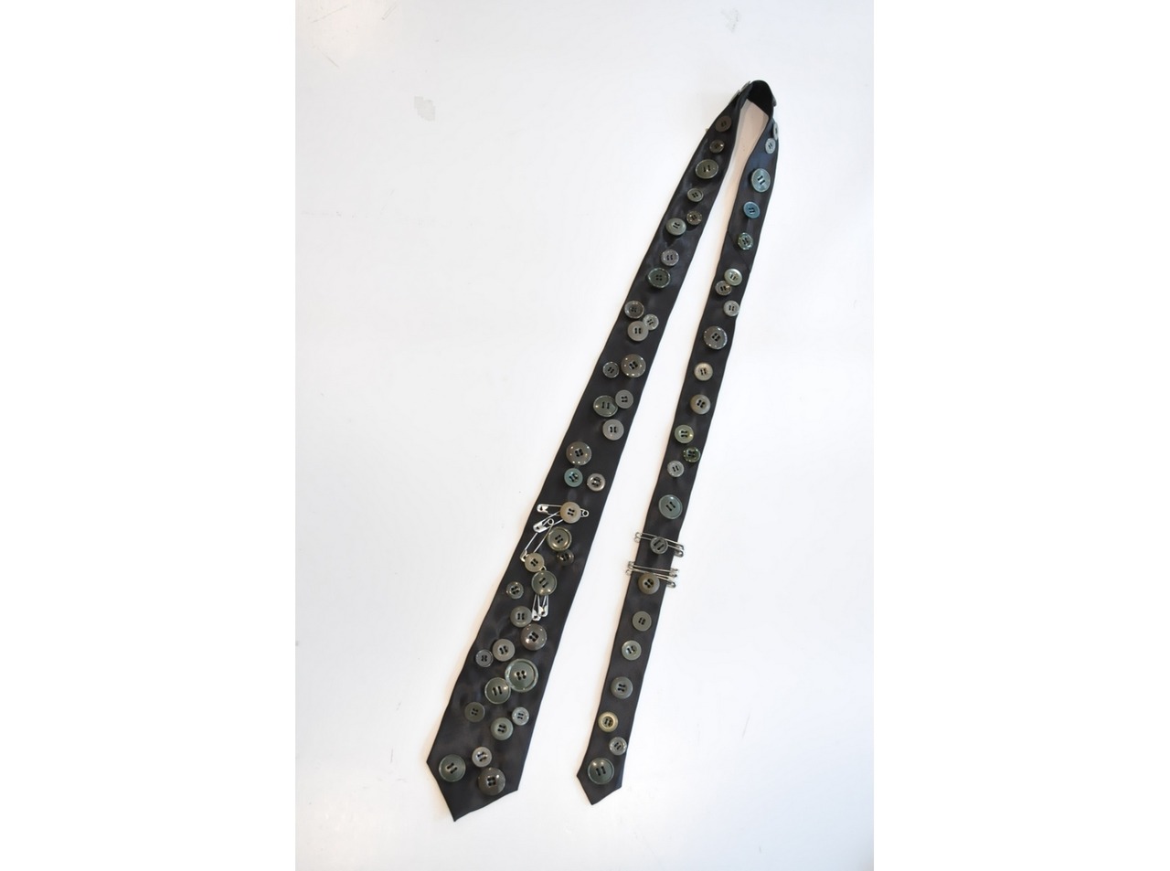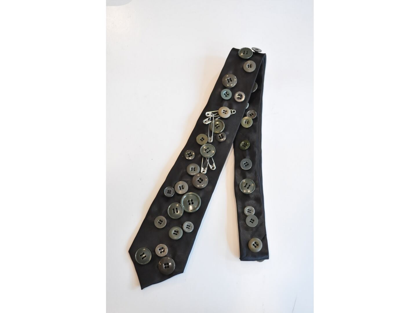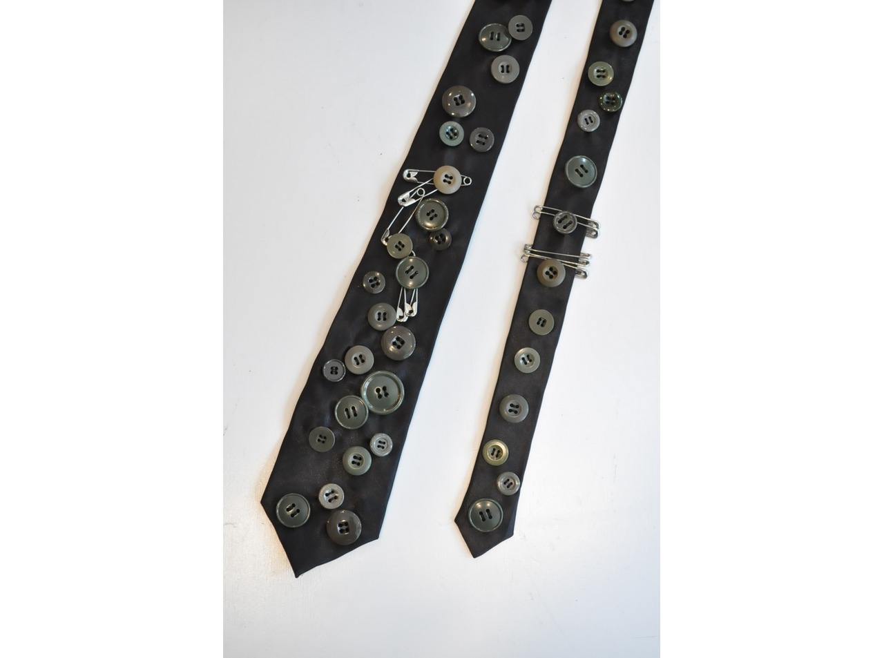ヴィンテージやミリタリーのボタンなど様々なパーツを贅沢に、且つ、ふんだんに散りばめた一点物のネクタイ。
