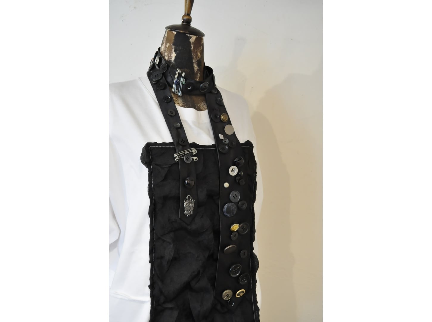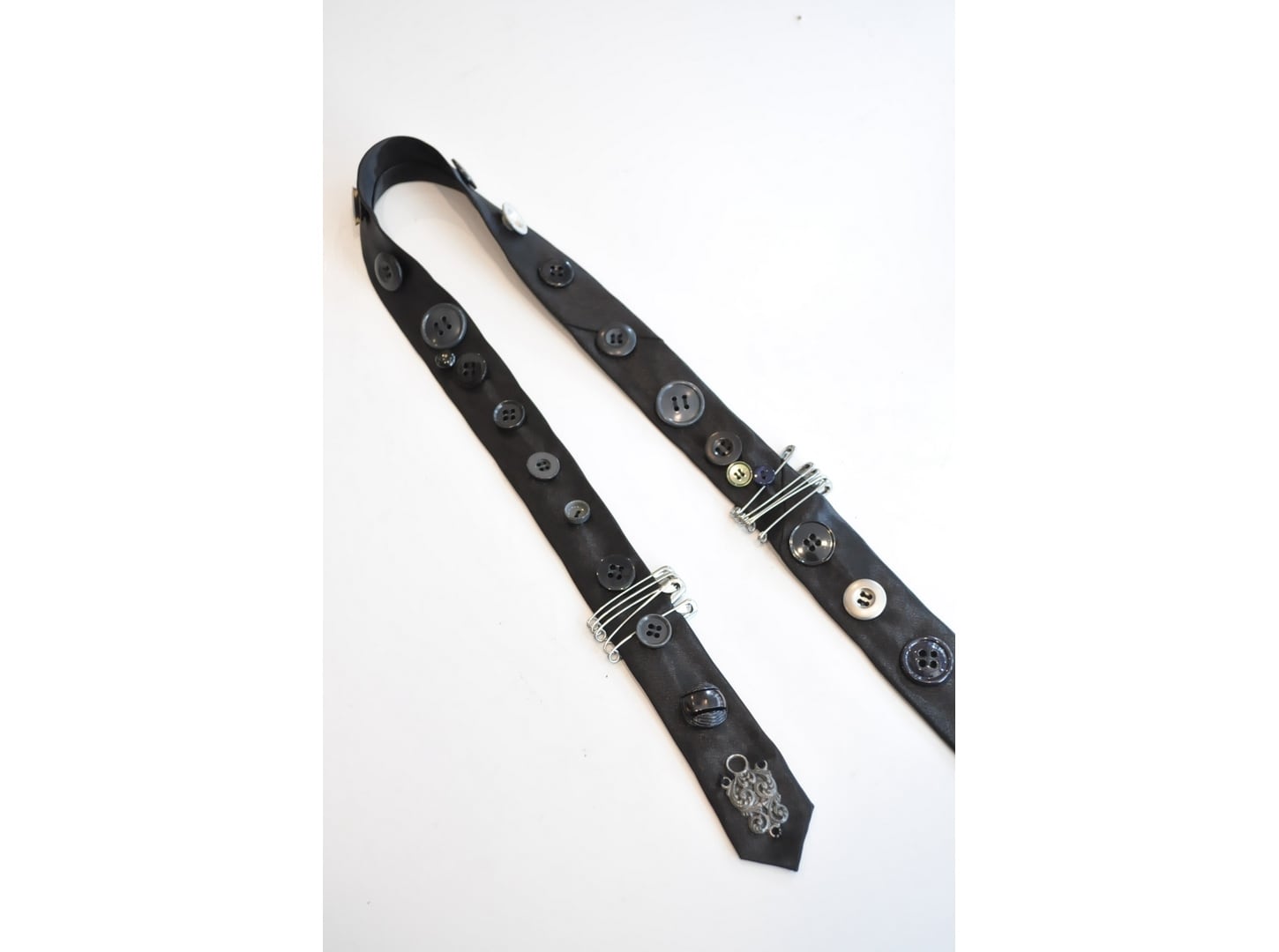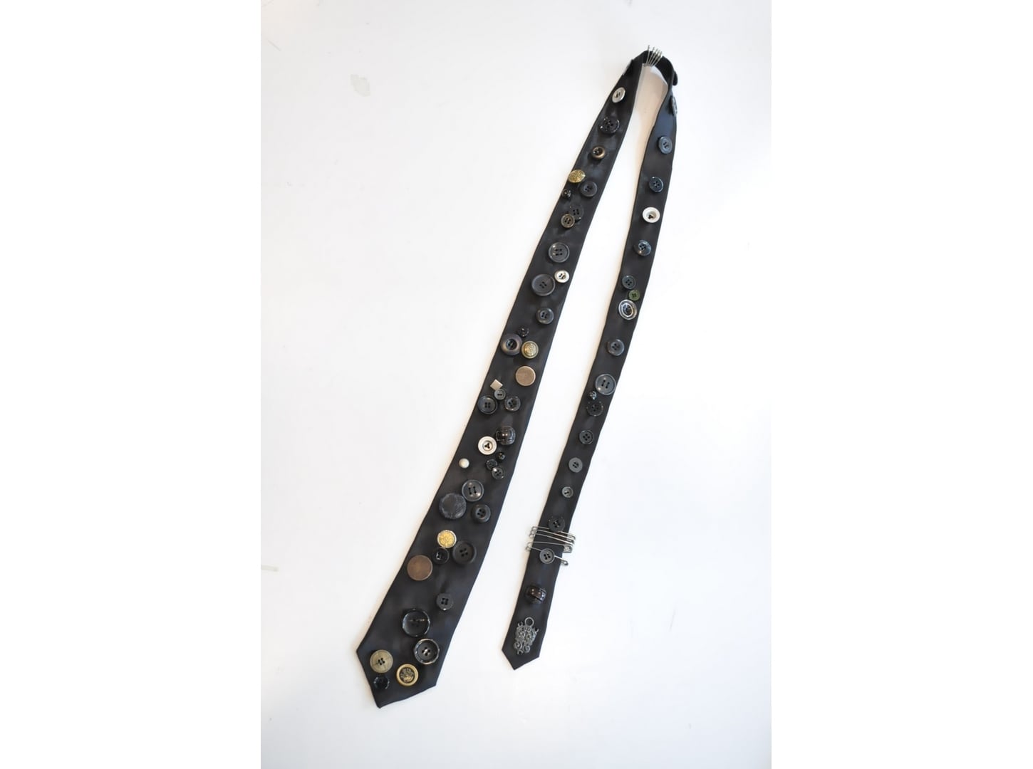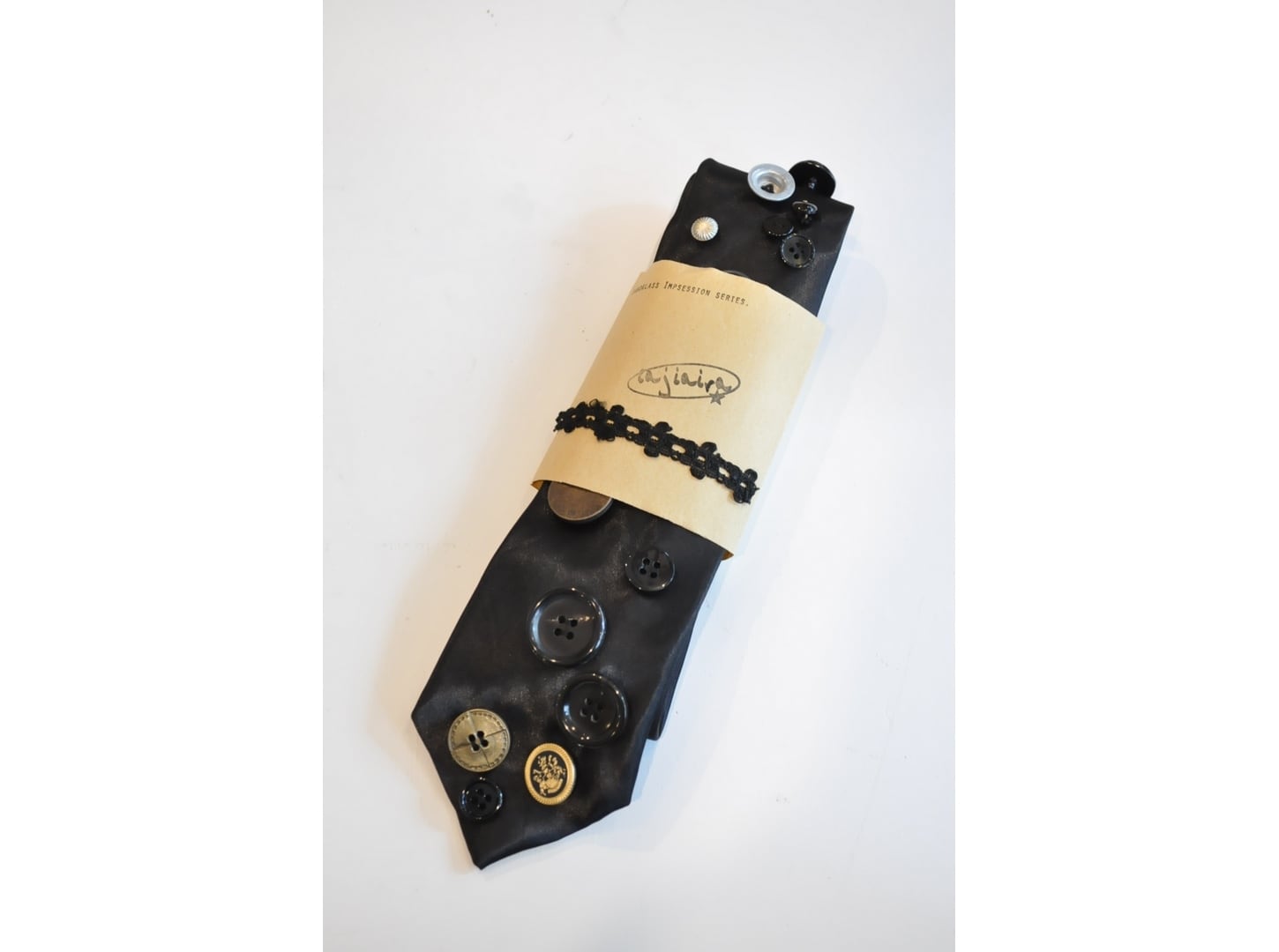 ヴィンテージやミリタリーのボタンなど様々なパーツを贅沢に、且つ、ふんだんに散りばめた一点物のネクタイ。
