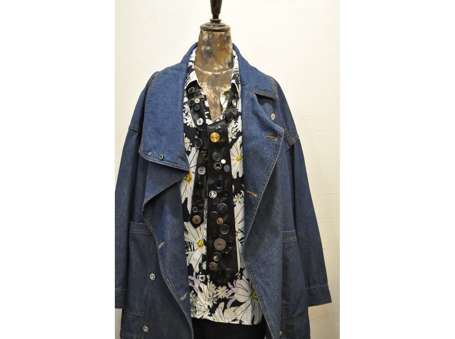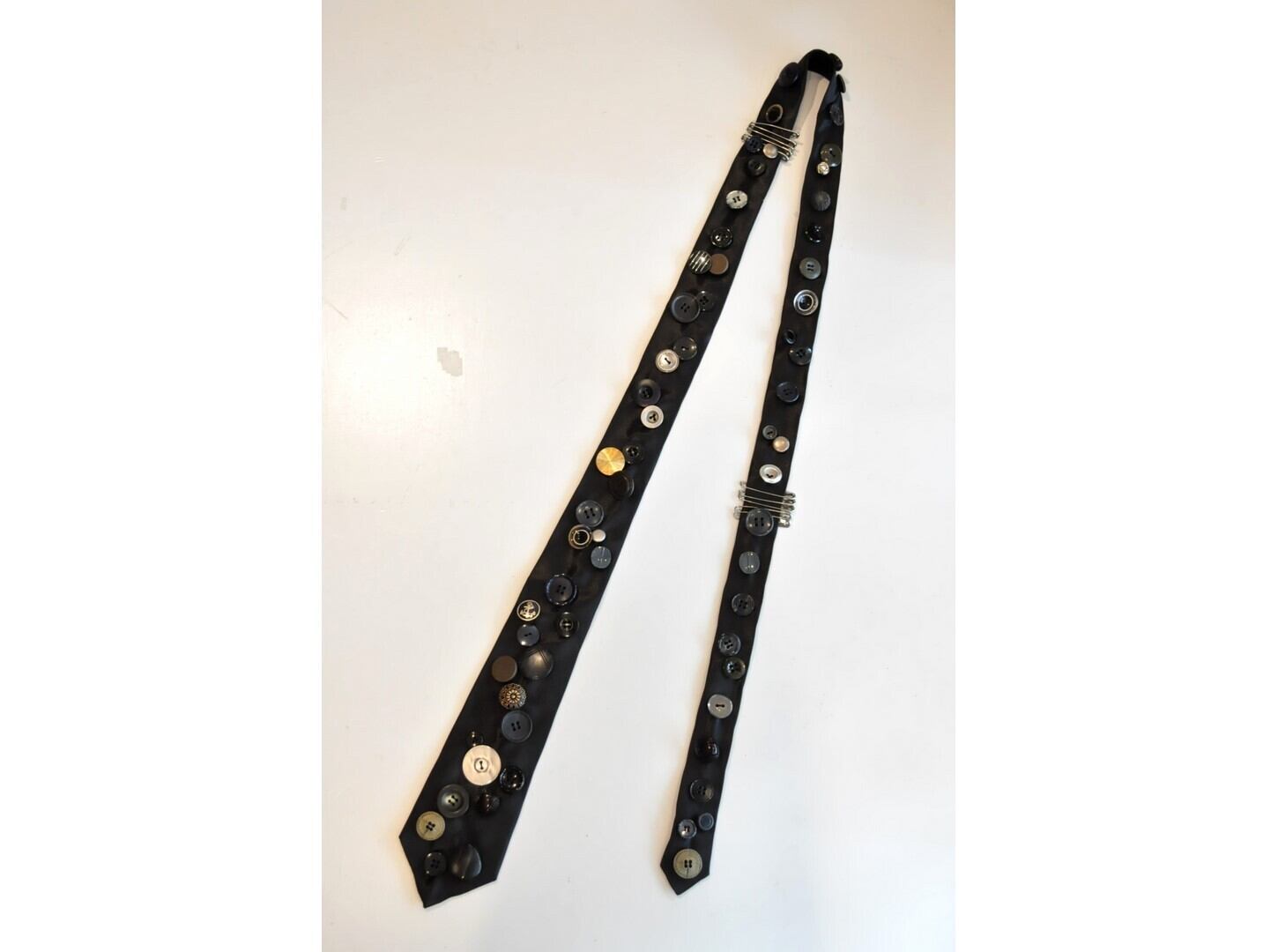 ヴィンテージやミリタリーのボタンなど様々なパーツを贅沢に、且つ、ふんだんに散りばめた一点物のネクタイ。