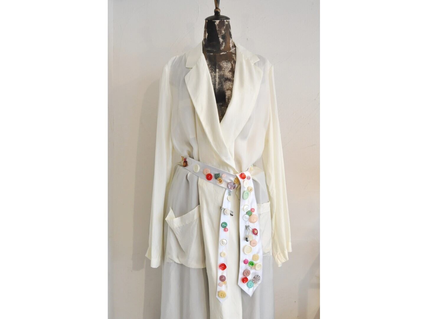 ヴィンテージやミリタリーのボタンなど様々なパーツを贅沢に、且つ、ふんだんに散りばめた一点物のネクタイ。