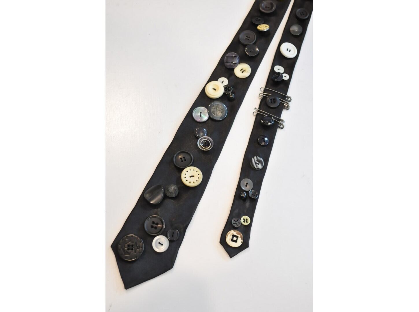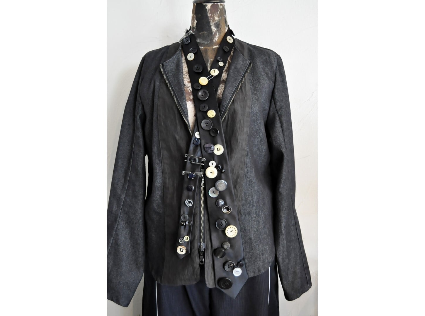 ヴィンテージやミリタリーのボタンなど様々なパーツを贅沢に、且つ、ふんだんに散りばめた一点物のネクタイ。