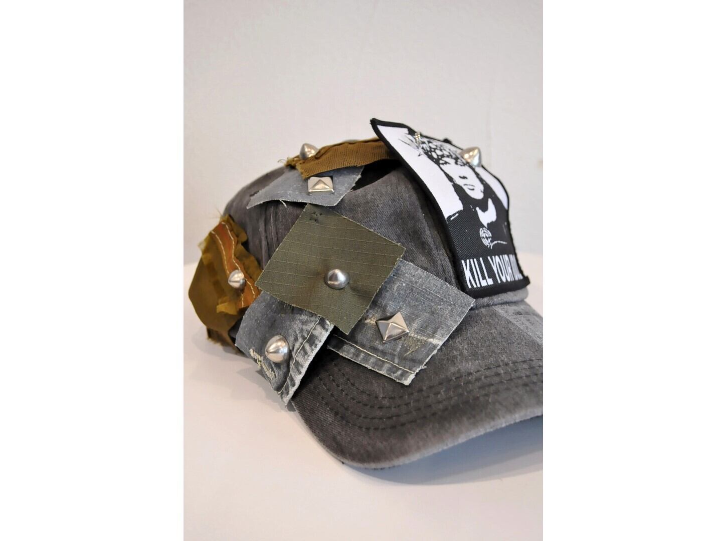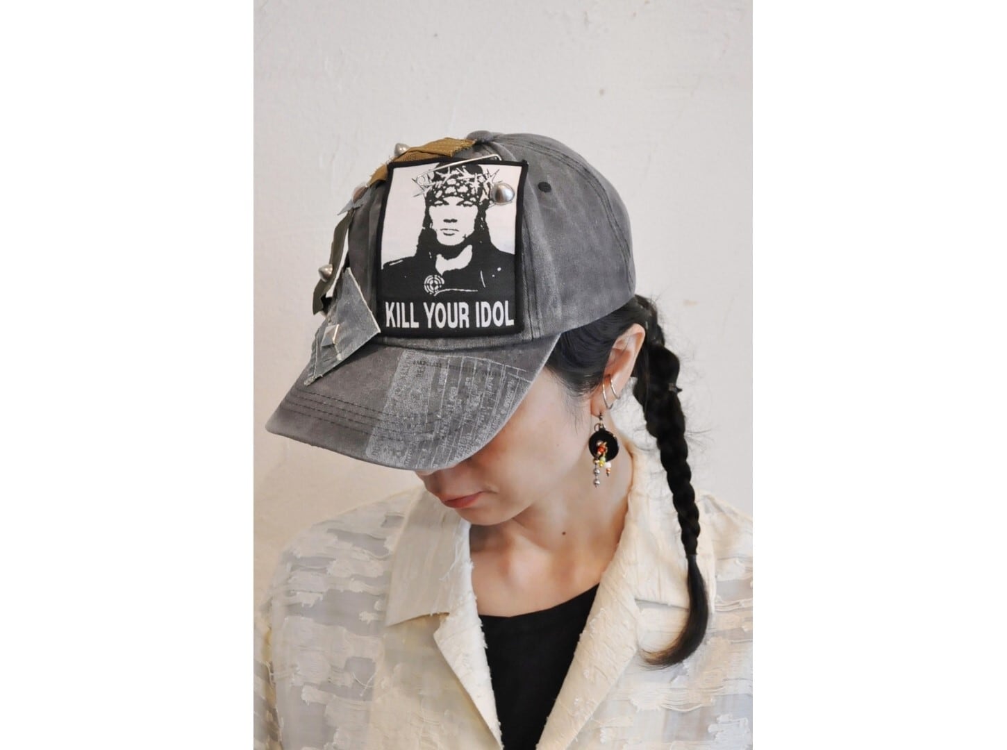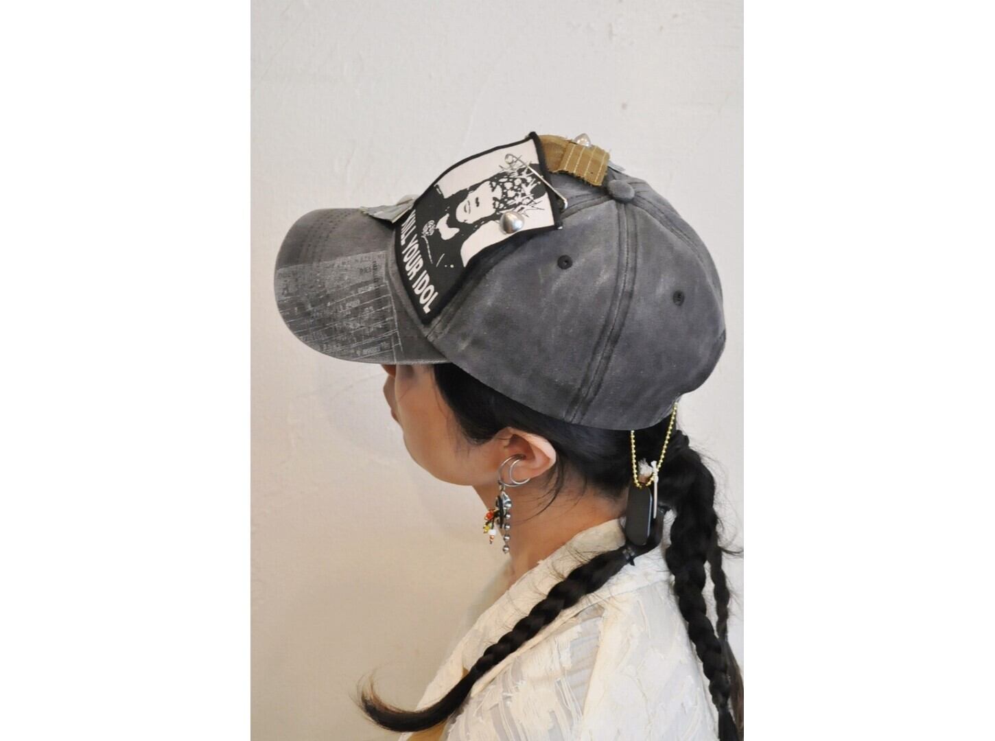 デザイナーが収集していたvintageのワッペンとミリタリーパーツなどを組み合わせた、個性的なデサインのデニムキャップ。