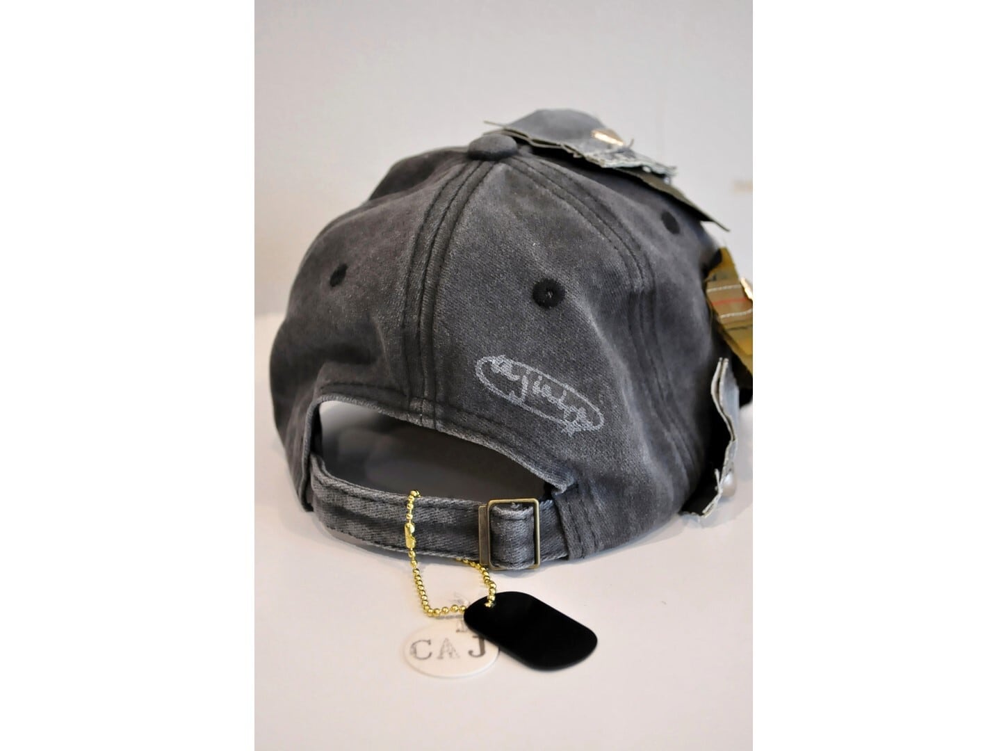 デザイナーが収集していたvintageのワッペンとミリタリーパーツなどを組み合わせた、個性的なデサインのデニムキャップ。