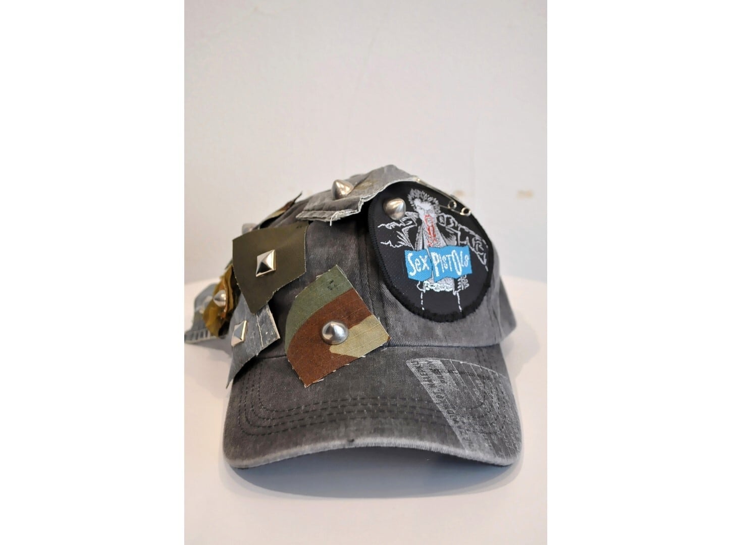 デザイナーが収集していたvintageのワッペンとミリタリーパーツなどを組み合わせた、個性的なデサインのデニムキャップ。