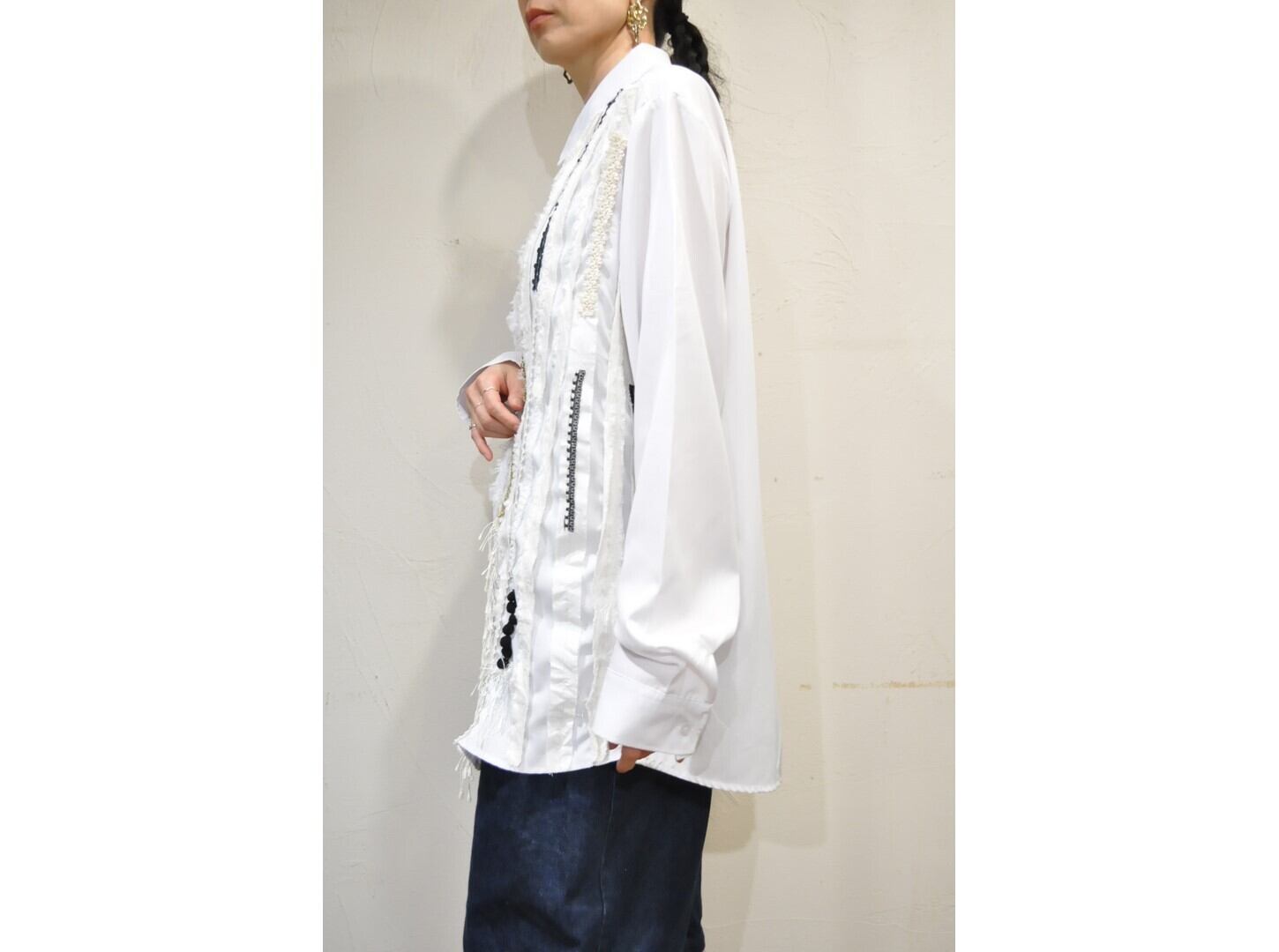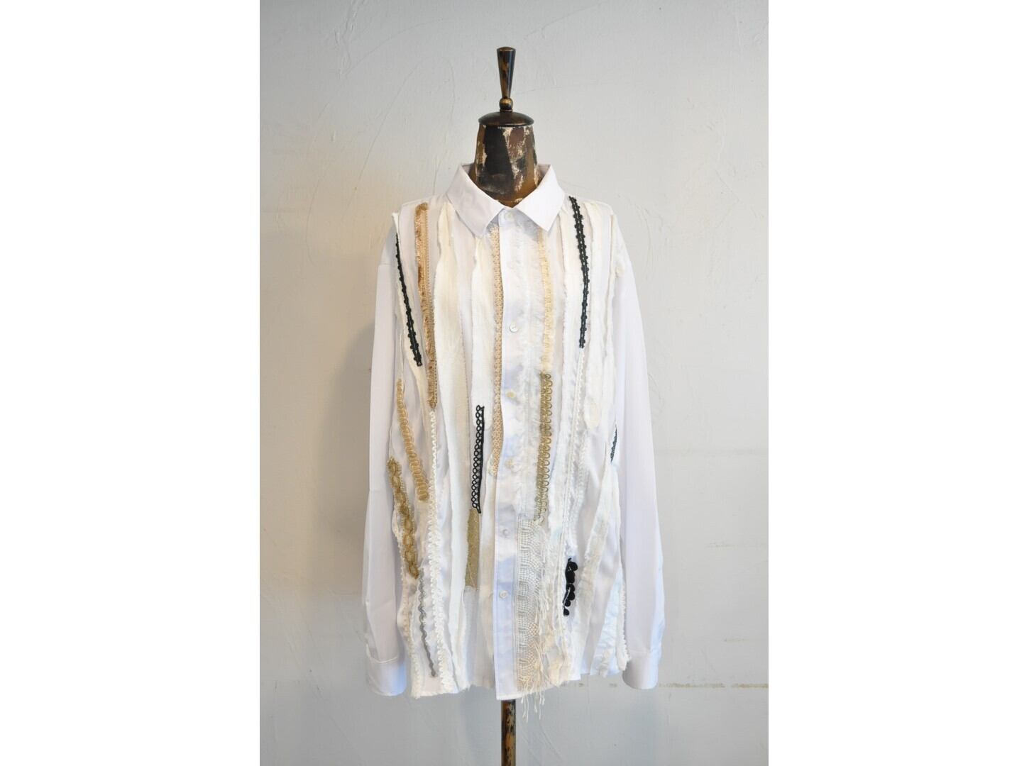 デザイナーがストックしていた希少な生地やヴィンテージのブレード・レースなど贅沢に使い装飾した、オーバーサイズのシャツ。