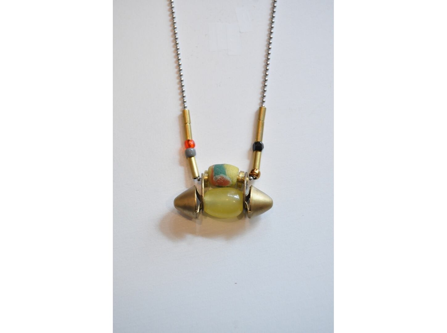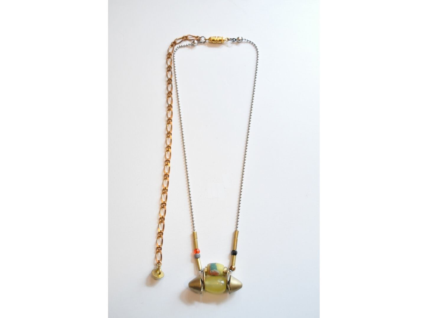 ビース、真鍮など、色々なパーツを使用したデザインです。