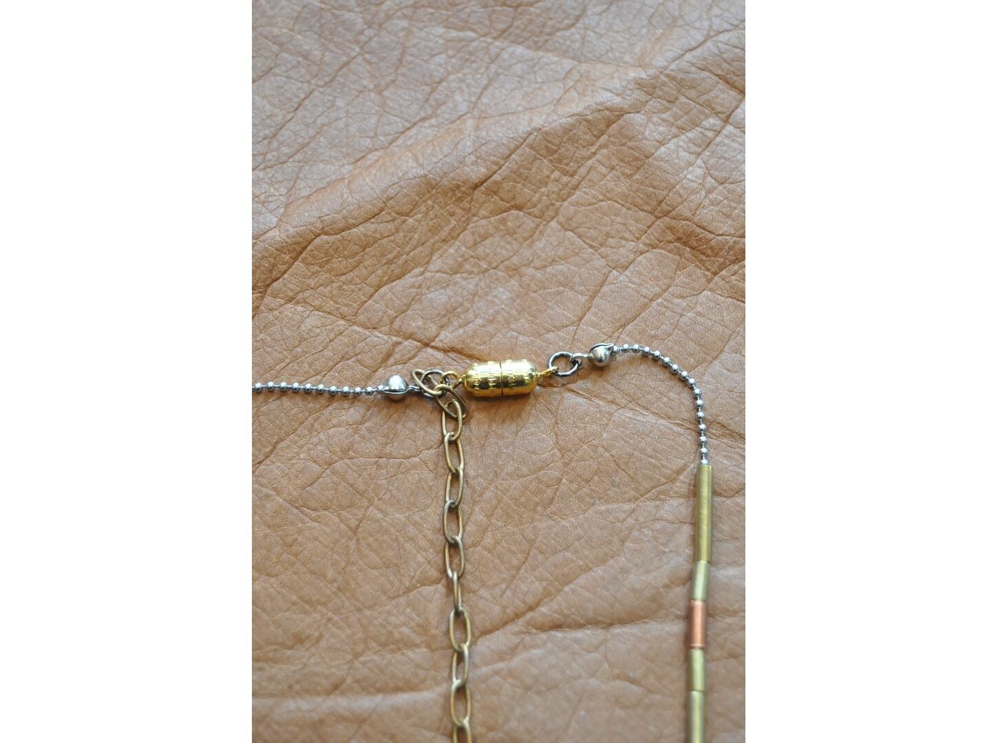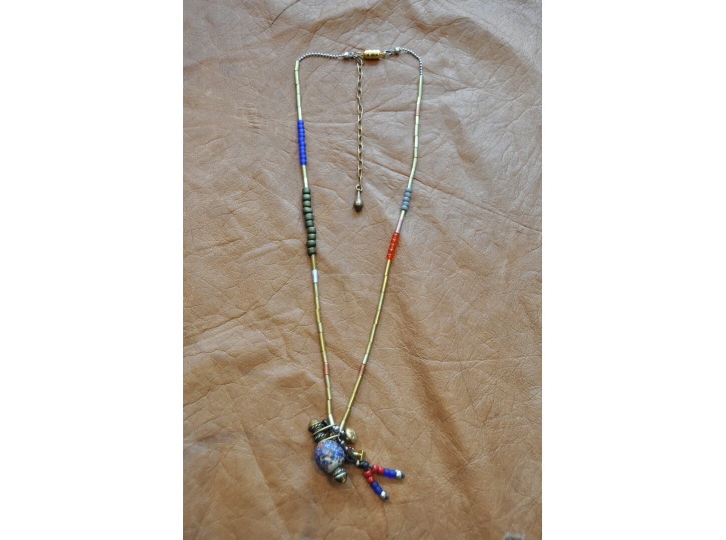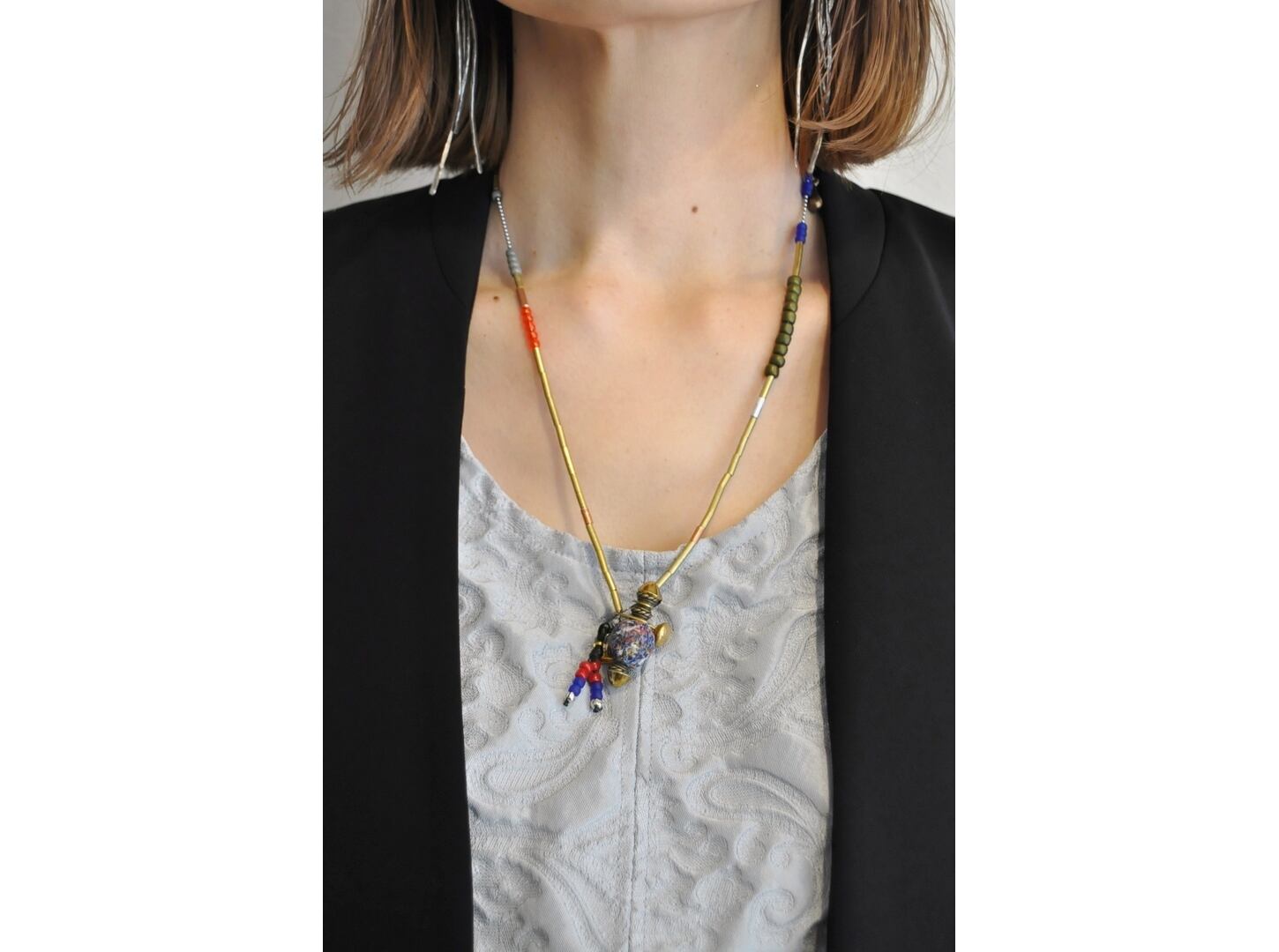 チェコガラス、ビース、真鍮など、色々なパーツを使用したデザインです。