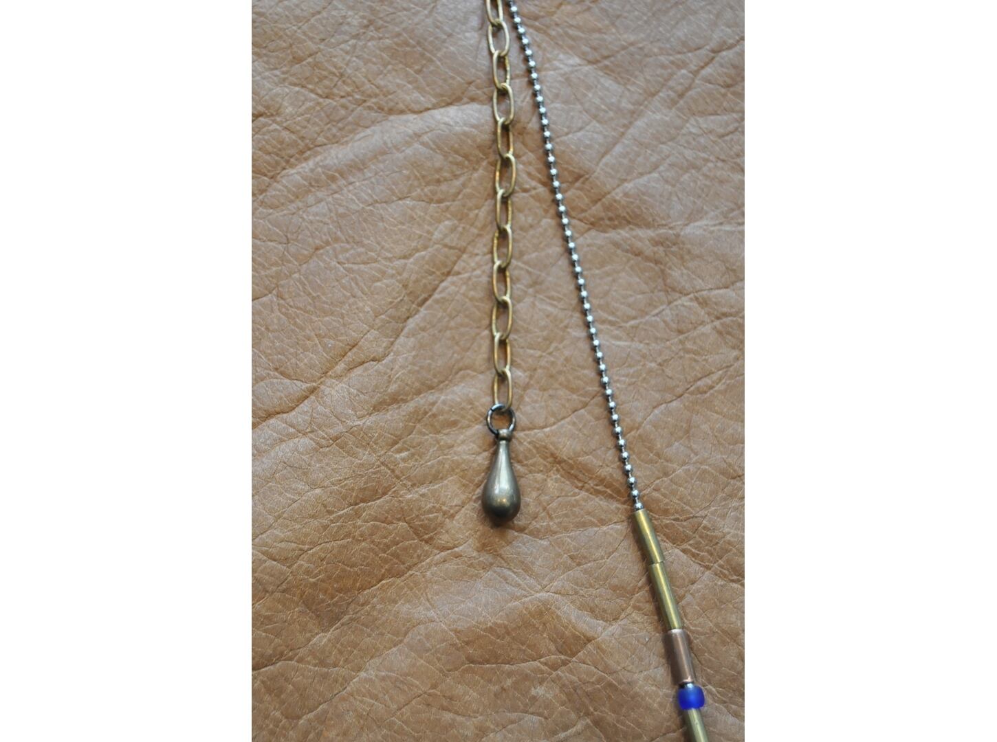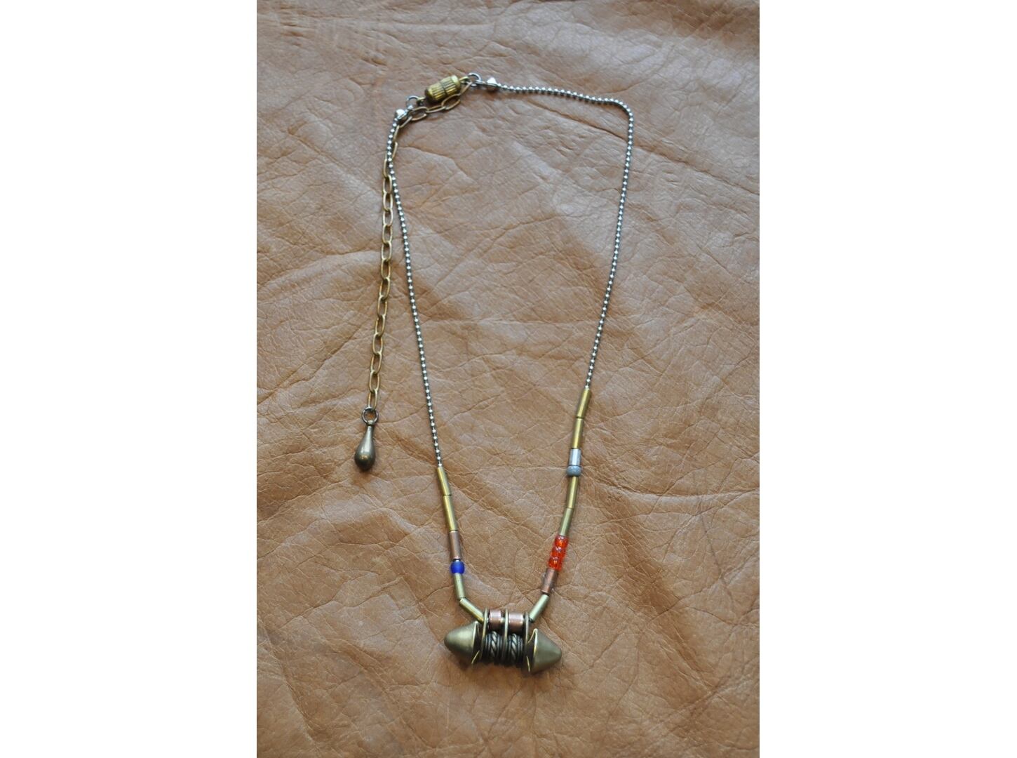 ビース、真鍮など、色々なパーツを使用したデザインです。
