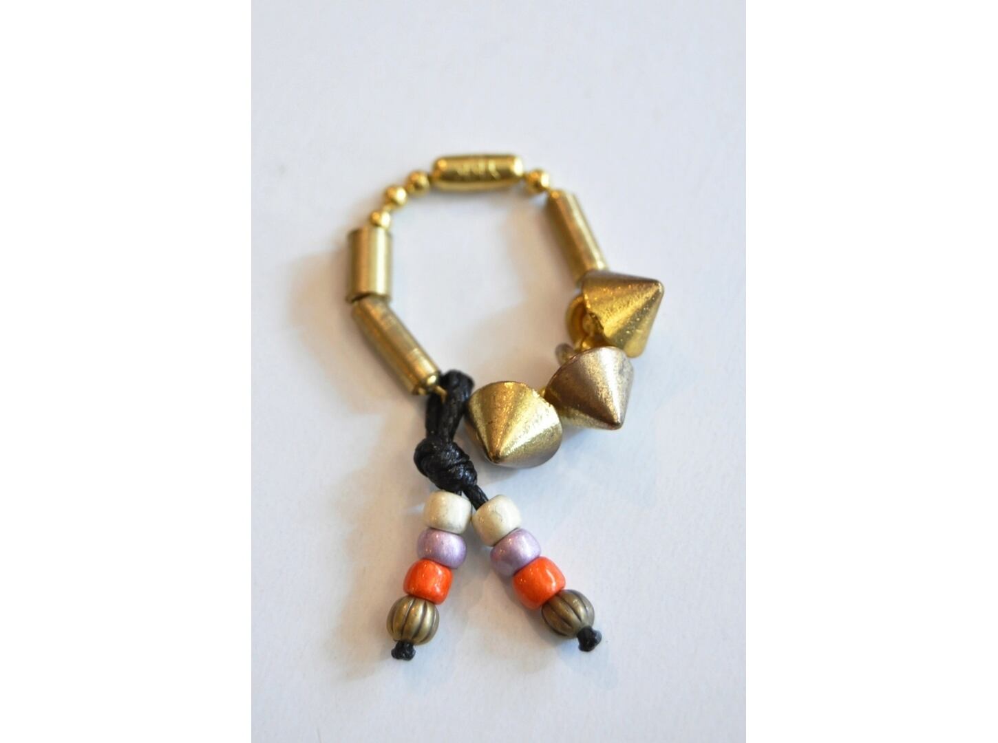 子供のころ玩具屋でみたカラフルでキラキラしたフェイクアクセサリーをイメージして、長年かけて少しづつ収集してきた古いガラスや石、旅先で見つけたチャームなどを思い出とともにデザイナーが大好きなボールチェーンで繋げた作品になります。