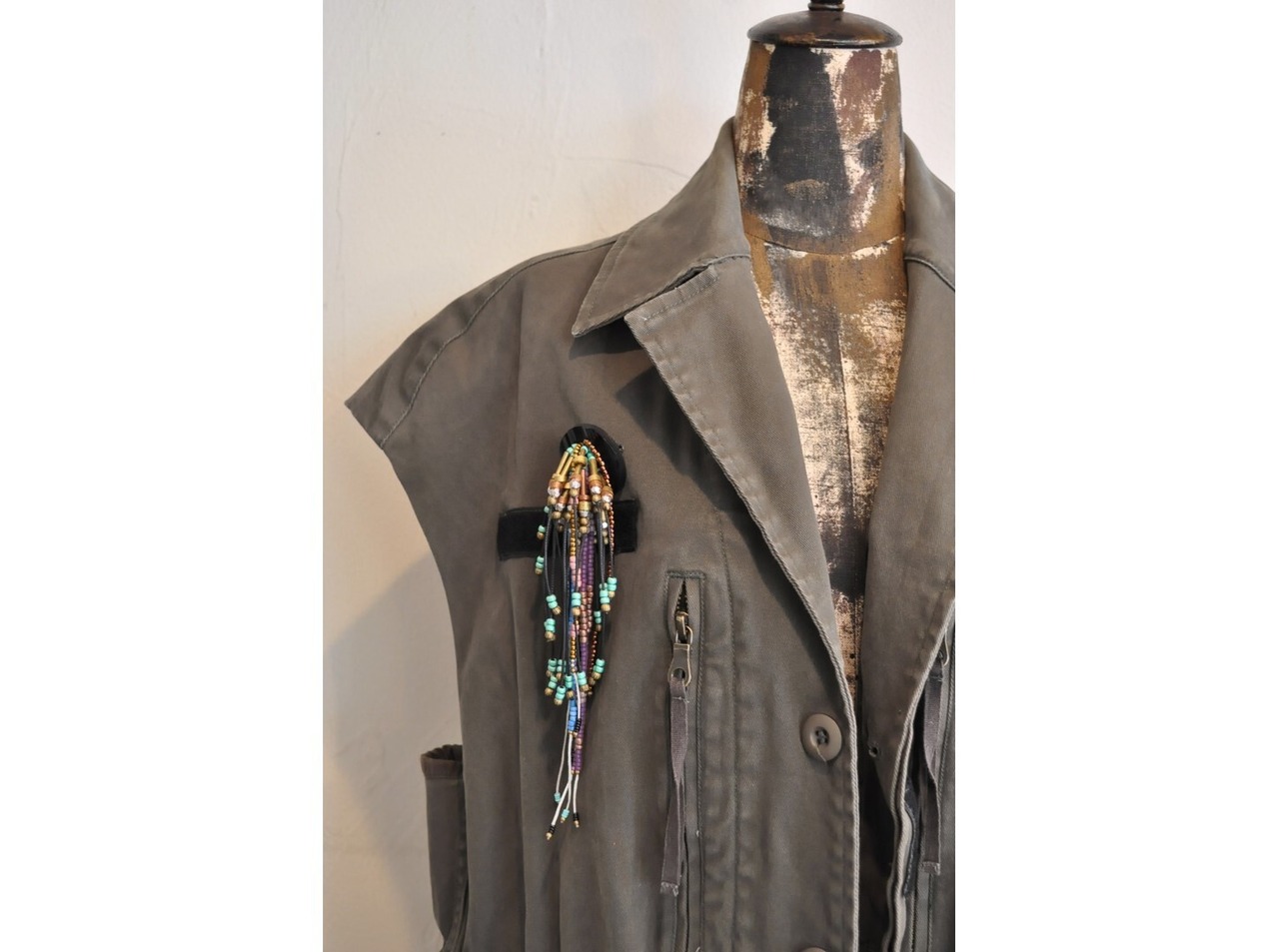 ヴィンテージボタンやミリタリーパーツなどを使用し、vintageと音楽の世界から見るbrodgeを手作業で一つ一つ完成させています。